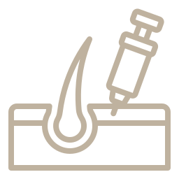 • O médico aplica pequenas quantidades de medicamento com microinjeções, distribuídas por áreas específicas do couro cabeludo.